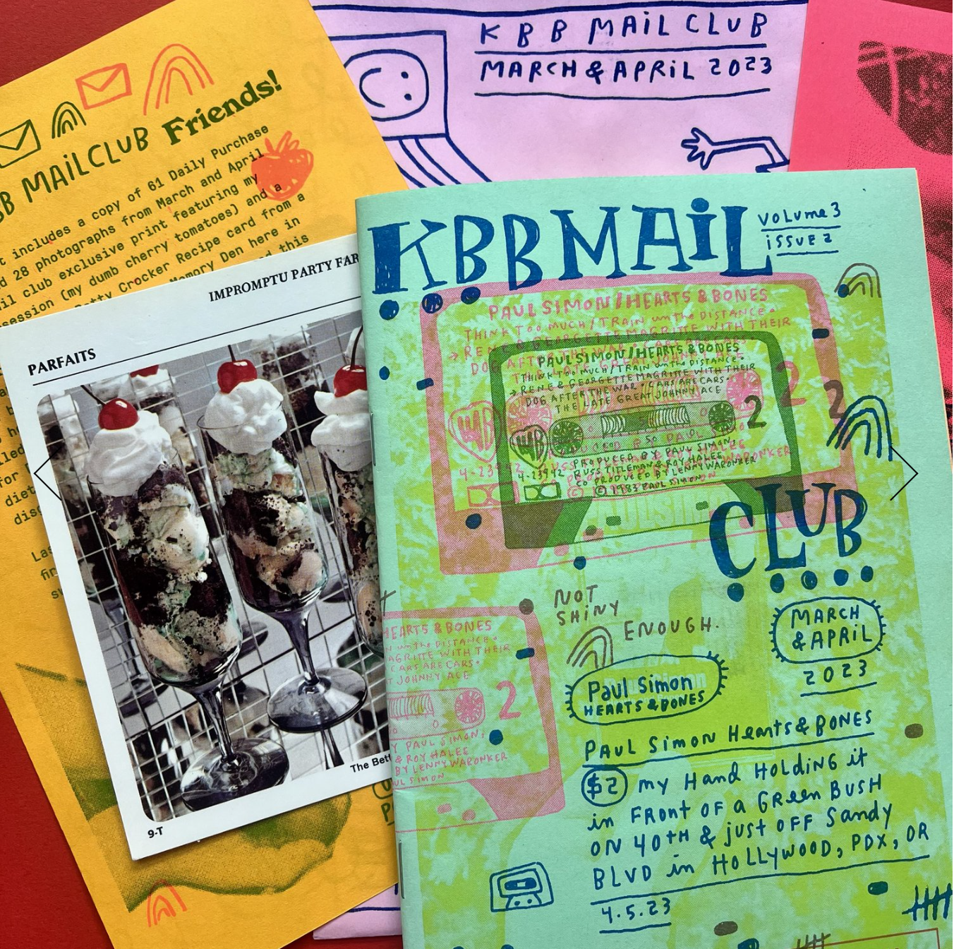 In Kate Bingaman Burt's risograph printed KBB Mail Club you can buy individual zines or sign up for the yearly subscription when it opens up.
