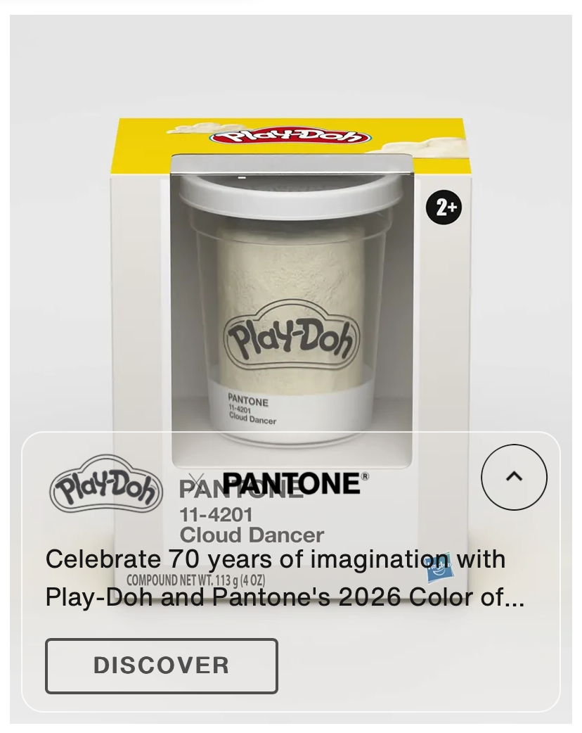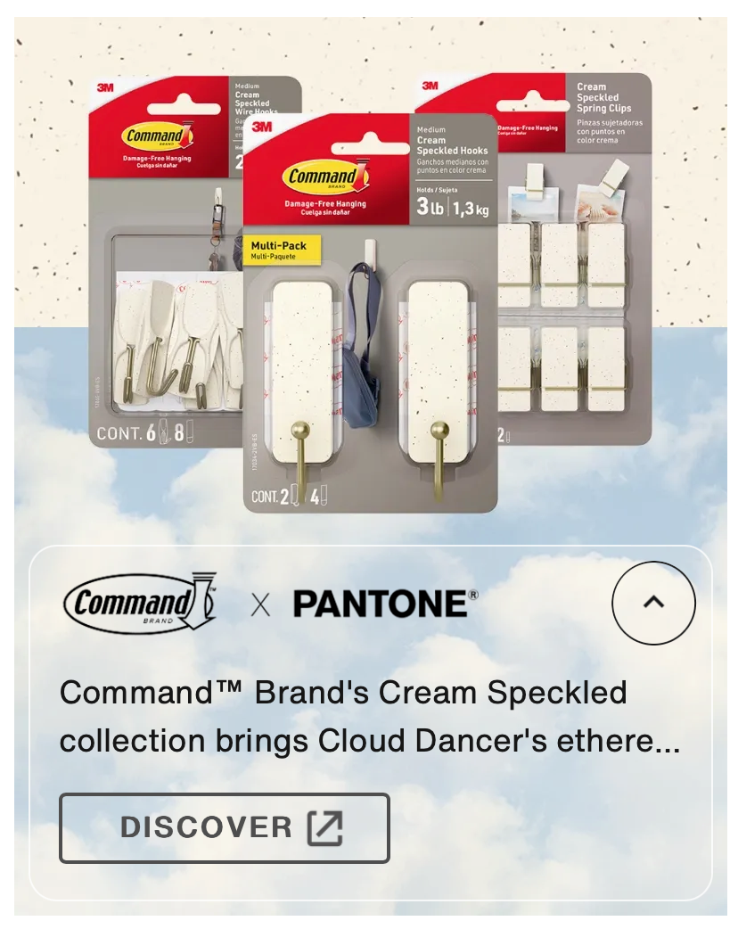 Nobody needs another post about Pantone’s new Color of the Year, which is basically Wheige, so I’ll get this set up out quickly. On the one hand, could it be more boring? On the other, and to their credit, I have not heard this much conversation about the COTY in years. Someone pointed out that the Oxford Word of the Year is “rage bait” so you shouldn’t really be surprised. The collabs listed on the Pantone page are hilarious – Command Strips were already white.