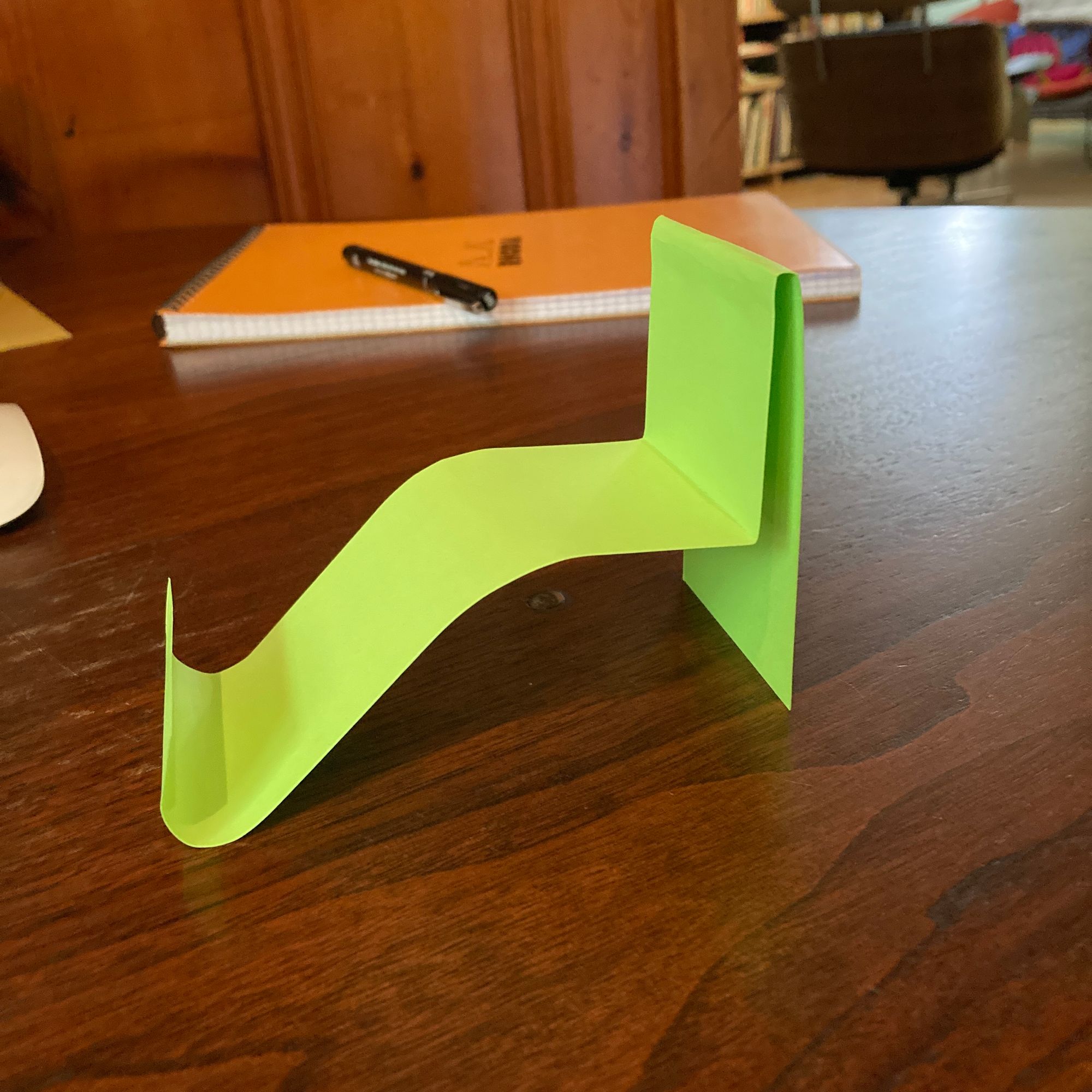Lastly, this was just for fun as part of the prototyping section of the Design Thinking course I took. Our assignment was to create a prototype of at least one possible chair design by only cutting and bending a sheet of paper or cardboard. Something tells me this may not be comfortable, but it looked cool, and I liked the integrated foot rest that was also a magazine holder. If anyone wants to produce this, ring me.