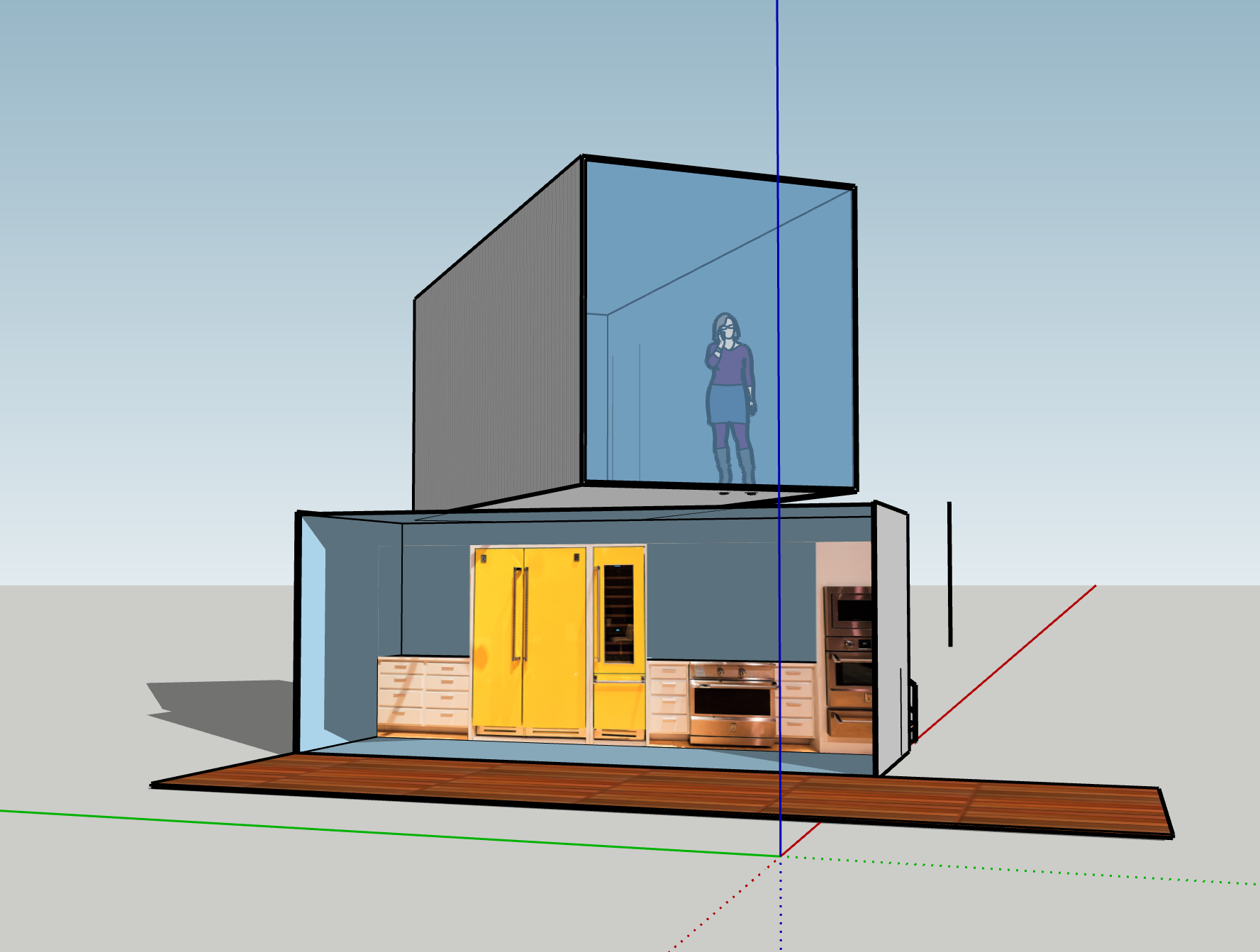 Here's the resulting Sketchup model. I'm no power user, but I've found it's really helpful in trade show (or other physical spaces) design, photography and CGI art direction. I'm not trying to make the end result, I just want to figure out and then communicate the space or arrangement.