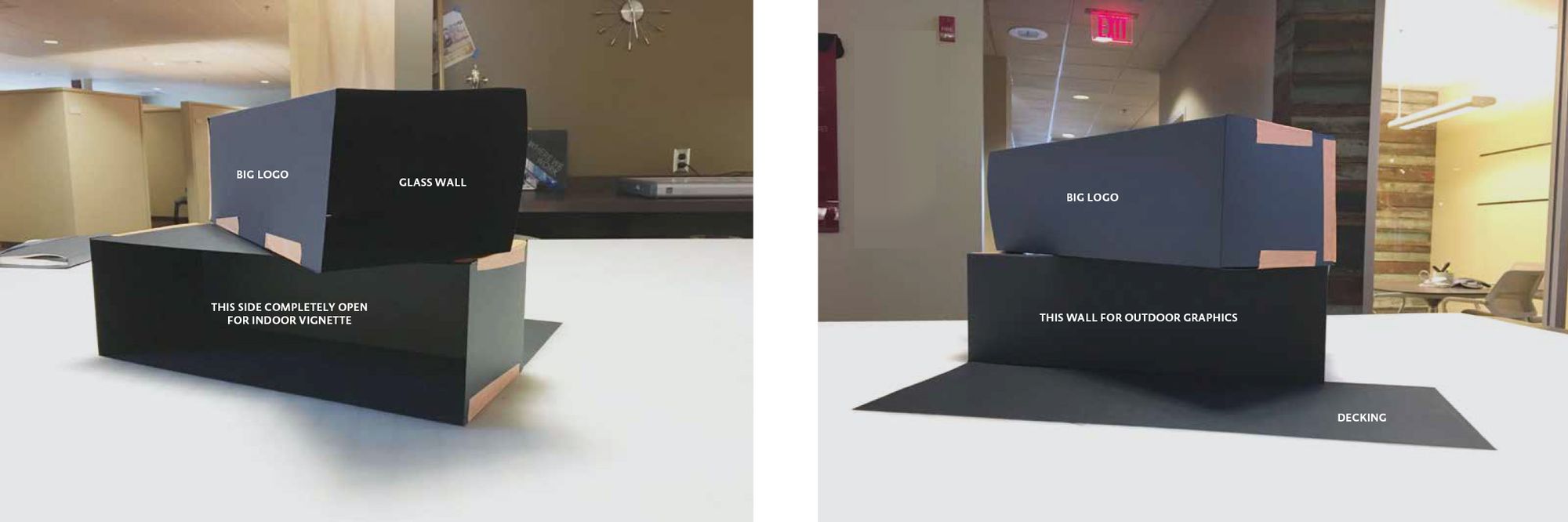 Here is a super lo-fi paper prototype I did for a trade show setup. It was a quick way to see if it really made sense in space. I ended up transferring this into Sketchup, but I wanted to make sure it was worth the time. At this stage, it would have been easy and quick to move things around physically or try out different arrangements. Or toss it into the trash.
